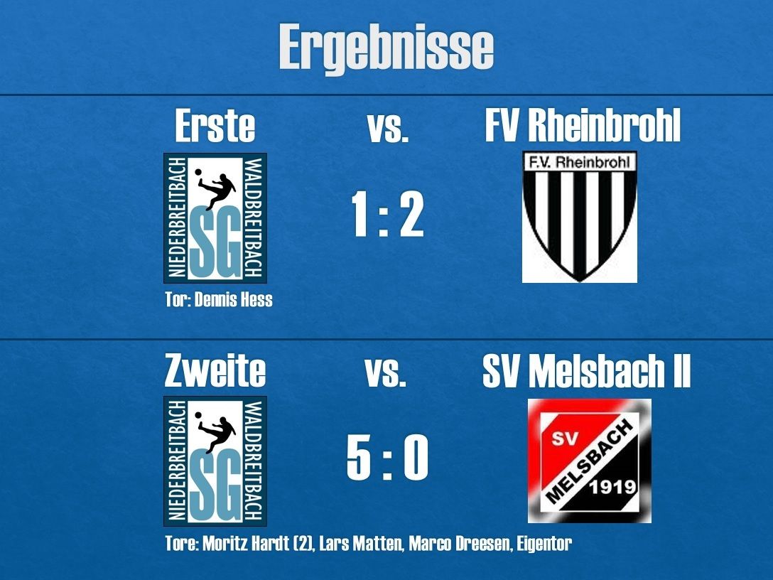 Am vergangenen Sonntag empfing die zweite Mannschaft um 12:30 Uhr in Niederbreitbach die Reserve des SV Melsbach. Die Tabellensituation sprach deutlich für die Heimelf. Jedoch kam es zu Beginn wie so oft in Spielen gegen einen klaren Underdog. Zwar ging unsere Elf früh 1:0 in Führung, ließ danach jedoch nahezu alles vermissen, was man sich vorgenommen hatte. Leichtsinnige Ballverluste und vergebene Chancen sorgten dafür, dass man sich selbst das Leben schwer machte. In der zweiten Halbzeit sollte die Mannschaft dann ein anderes Gesicht zeigen. Das Spiel wurde geradliniger und es wurden vermehrt die Torchancen genutzt, sodass am Ende ein hochverdienter 5:0 Erfolg zu Buche stand. Das Spiel hätte jedoch viel früher entscheiden sein müssen! Dennoch geht es nun gut gerüstet in das Topspiel der kommenden Woche, wenn unsere Zweite am 26.03. um 15:00 Uhr beim Tabellenführer, den Kickers Westerwald in Buchholz zu Gast ist.