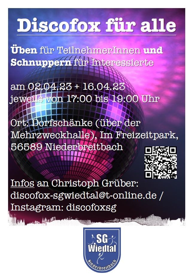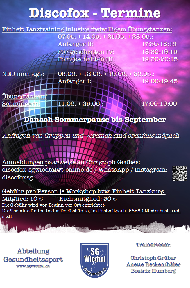 Ab dem 10.04.2022 bietet die SG Wiedtal Niederbreitbach wieder Discofox-Tanztrainings an!